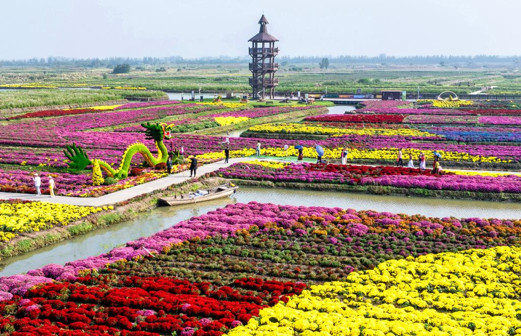 ??2025年10月13日,游客在江蘇省興化市千垛景區(qū)賞菊游玩(無人機(jī)照片)。新華社發(fā)(周社根 攝)