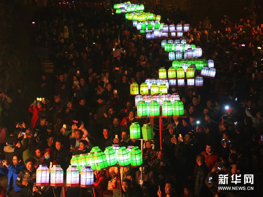 15日,湖南衡陽縣界牌鎮(zhèn)舉行火燈節(jié)民俗活動,居民們點亮火把、紅燭,彩燈等,走街串巷,祈求一年風(fēng)調(diào)雨順、農(nóng)業(yè)生產(chǎn)豐收、社會平安和諧。新華社發(fā)(曹正平 攝)