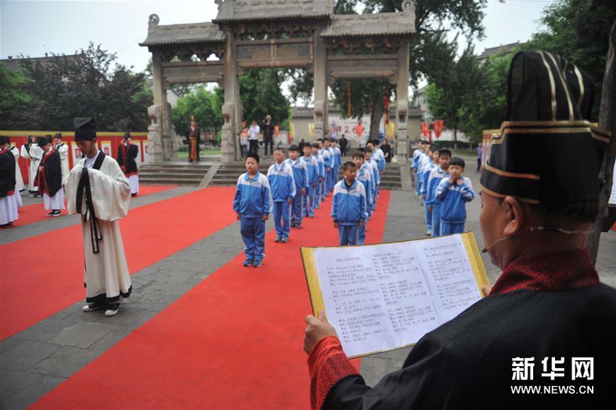 5月7日,山西運城新絳縣在當地千年古城絳州的文廟首次舉行釋菜禮大典,以弘揚傳承尊師古文明,吸引了城鄉(xiāng)眾多群眾和中小學生冒雨觀典。新華社發(fā)(高新生 攝)