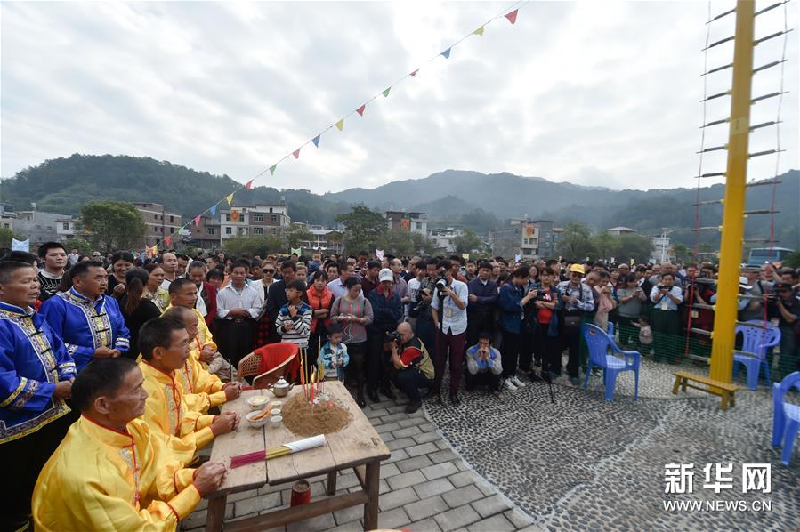農(nóng)歷十月十五前后,福建西部武平縣各山村陸續(xù)進(jìn)入農(nóng)閑時(shí)節(jié)。按照當(dāng)?shù)仫L(fēng)俗,不同村子各自擇日舉辦民間活動(dòng),其中較有代表性的就是“上刀山”絕技。“上刀山”絕技在閩西山村流傳已有數(shù)百年歷史,表演者需光腳順著磨得鋒利閃亮的36把鋼刀,攀登至8米高的杉木柱子頂部,接受長(zhǎng)者祝福,祈求風(fēng)調(diào)雨順、五谷豐登。新華社記者 宋為偉 攝