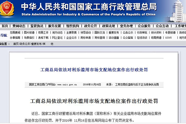 新華網(wǎng)北京11月16日電(記者婁奕娟)11月16日,國(guó)家工商行政管理總局官網(wǎng)發(fā)布處罰決定書(shū)稱(chēng),2009-2013年期間利樂(lè)集團(tuán)(簡(jiǎn)稱(chēng)利樂(lè))有關(guān)企業(yè)濫用市場(chǎng)支配地位案件,對(duì)其依法作出行政處罰,其中處罰款近6.68億元人民幣。