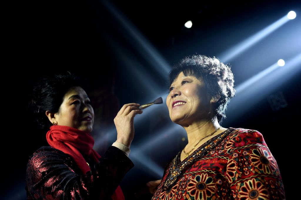 ↑1月3日,山西省渾源縣貧困山區(qū)合唱團(tuán)團(tuán)員們?cè)诨瘖y。