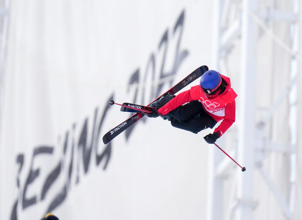 2月17日,中國隊(duì)選手谷愛凌在北京冬奧會(huì)自由式滑雪女子U型場地技巧資格賽中。新華社記者劉潺攝