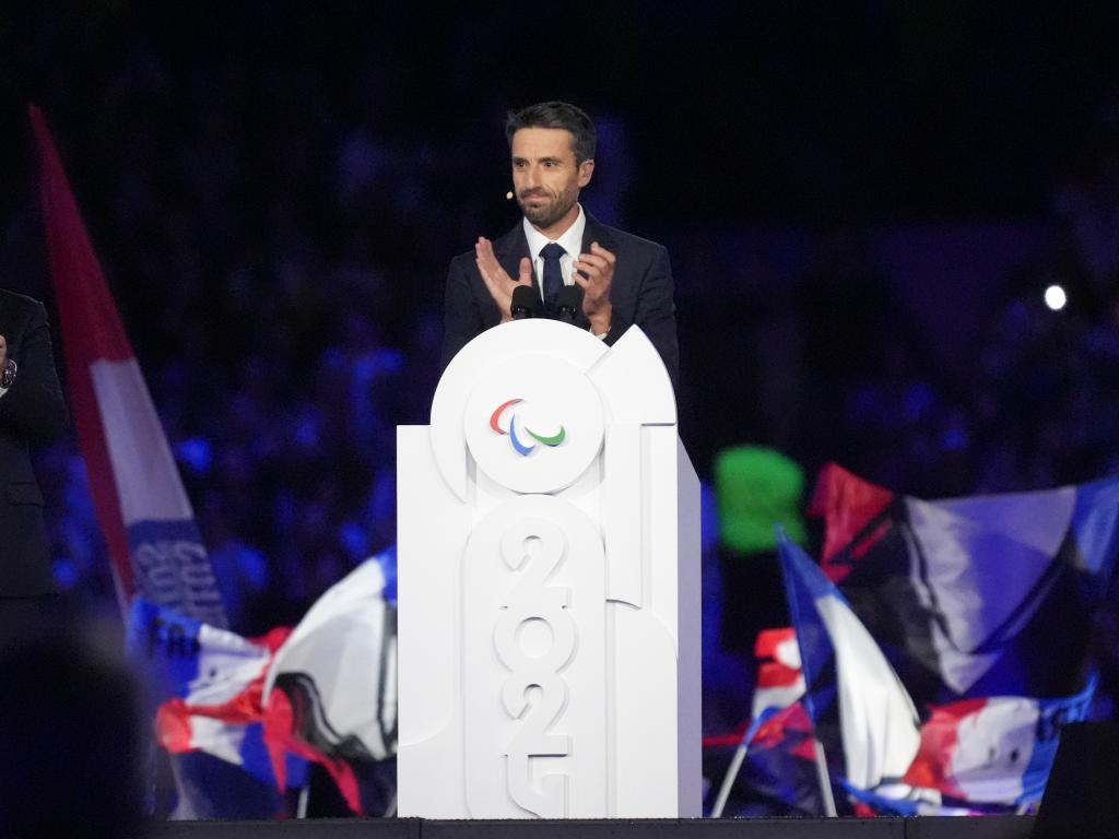 巴黎奧組委主席埃斯坦蓋在講話中數(shù)次向運(yùn)動(dòng)員送上感謝?!澳銈兠恳淮伪荣惗嘉嗳思尤?,你們每一次成功都讓氣氛更加熱烈。每一次驚呼,每一次哭泣,每一顆勇往直前的心,你們?cè)诟淖內(nèi)藗兛创w育和殘疾的眼光。謝謝你們,人們看到了一個(gè)包容性的世界是何面貌。”