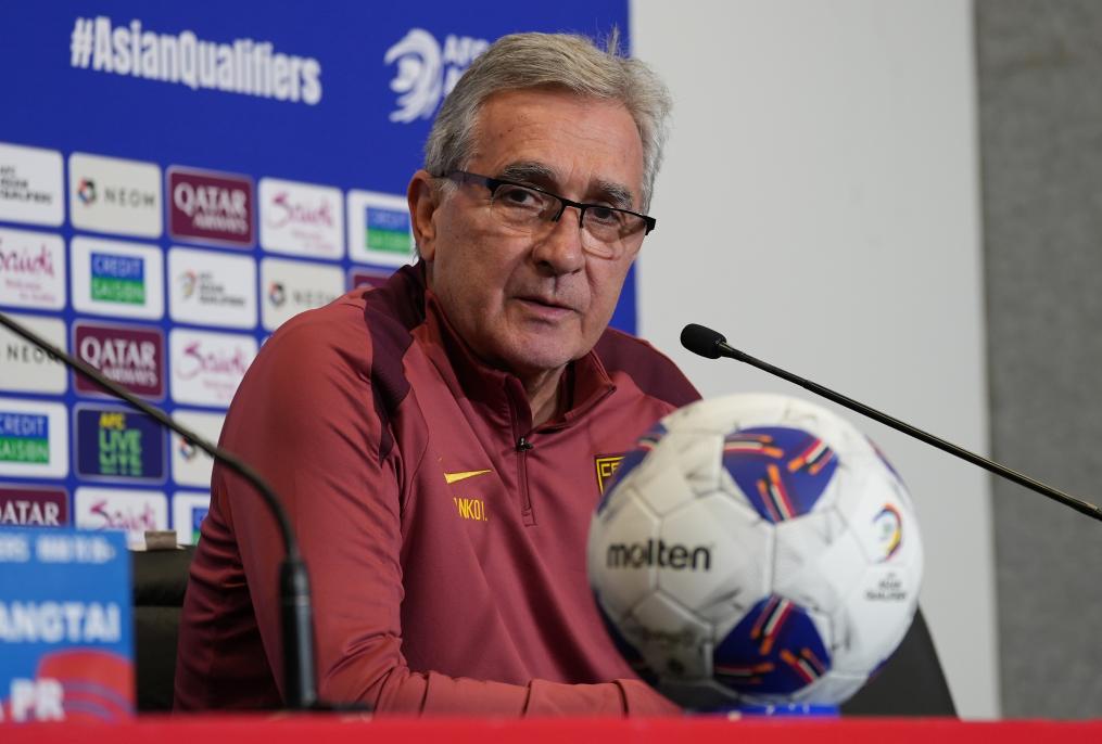 10月9日,中國隊主教練伊萬科維奇在發(fā)布會上。新華社發(fā)(謝思達(dá) 攝)