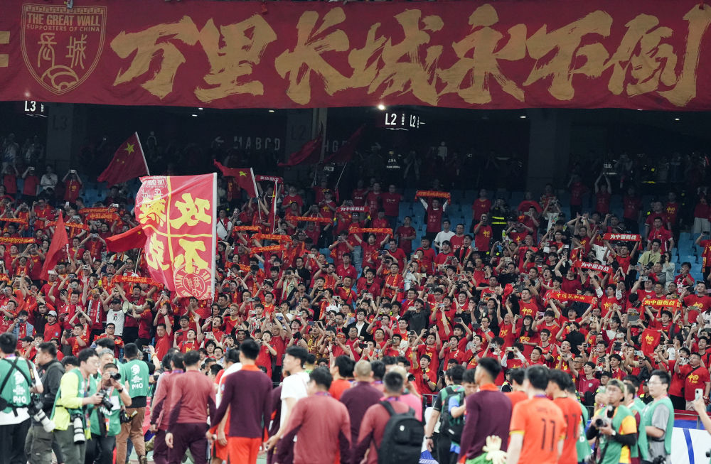 3月25日,中國(guó)隊(duì)球迷在賽后鼓勵(lì)球隊(duì)。新華社記者 黃宗治 攝