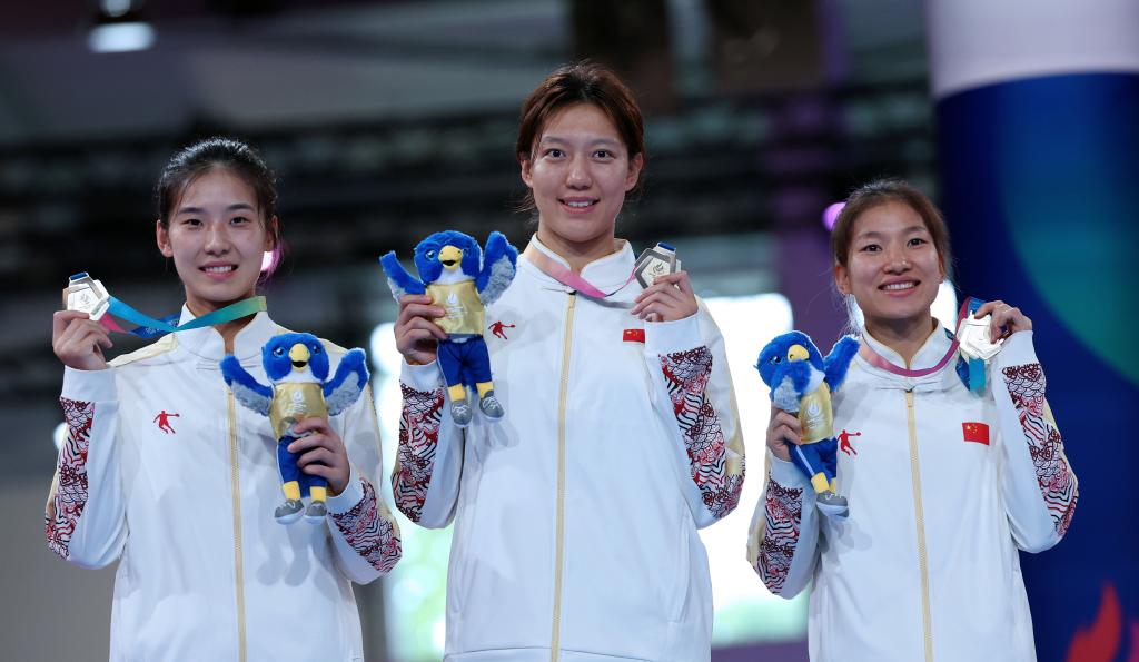 跆拳道也在當(dāng)日結(jié)束全部比賽,中國隊在該項目上共獲4金2銀3銅。在跆拳道女子團(tuán)體競技比賽中,由郭清、穆文喆、邢佳妮組成的中國隊延續(xù)強(qiáng)勢表現(xiàn),從16強(qiáng)賽一路以三場2:0橫掃晉級,并在當(dāng)日決賽中以同樣比分戰(zhàn)勝韓國隊,奪得冠軍。