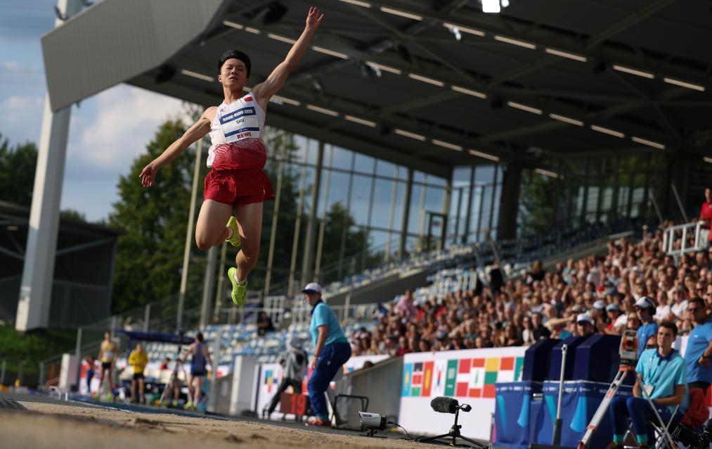 新華社德國波鴻7月24日電(記者韋驊、張榮鋒)萊茵-魯爾大運會田徑項目24日進入第四個比賽日的爭奪,舒衡在男子跳遠比賽中摘金,為中國隊贏得在本次大運會田徑項目上的首枚金牌。