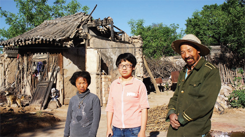 晏村是個有300多戶、3000多口人的村子,地勢高低不平,生活條件好些的村民搬遷到了城里或是村頭較為平整的地方居住了,留在村里的大部分是老人和小孩子。沿著彎彎曲曲、高低起伏的水泥路左拐右轉,是宿香玲一家暫時寄居的地方——她故去叔叔的家。院子里也是幾間破舊的房子,屋內墻壁、灶臺、土炕都是黑乎乎的,沒有一件像樣的家具,順著墻根有七八個大塑料袋,里面分別放著衣服和一些食用物品,宿香玲說,這些都是好心人和志愿者捐助的,這就是宿香玲家的全部家當。