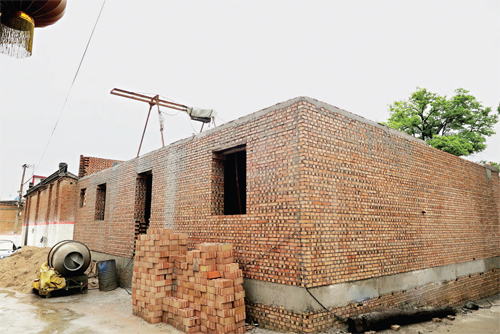 7月20日上午,記者驅車來到忻府區(qū)解原鄉(xiāng)北趙村。在一個緊鄰村委會北側的逼仄巷子里,記者見到了這棟已經(jīng)停工的紅磚房。一層和地下室主體已經(jīng)建成,修葺齊整的墻面與周圍的土階茅屋形成了鮮明的對比,沙子、攪拌機堆放在旁邊,讓本就不寬敞的巷子顯得更加擁擠不堪。