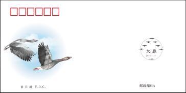 據(jù)悉,《大雁》首日封選用郝歐郵票未用稿。近景表現(xiàn)兩只飛翔的大雁,遠(yuǎn)景表現(xiàn)淡淡的天空,一動(dòng)一靜,彰顯畫(huà)面的節(jié)奏感。突出大雁的機(jī)敏、靈動(dòng)的特征。郵戳表現(xiàn)“人”字型雁陣,雁陣從頭到尾依長(zhǎng)幼之序而排,稱(chēng)作“雁序”凸顯大雁恭謙之意。(李冬梅)
