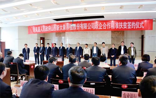 ???圖為岢嵐與山西新大象養(yǎng)殖股份有限公司政企合作精準扶貧簽約儀式現(xiàn)場。尹艷 攝??