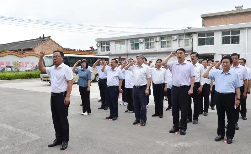 與五臺(tái)縣應(yīng)急管理局黨支部同志重溫入黨誓詞。馮曉磊 攝 朱曉東與五臺(tái)縣應(yīng)急管理局黨支部同志逐句認(rèn)真學(xué)習(xí)習(xí)近平總書記在慶祝中國(guó)共產(chǎn)黨成立100周年大會(huì)上的重要講話,強(qiáng)調(diào)要深刻領(lǐng)會(huì)講話向全世界莊嚴(yán)宣告,我們實(shí)現(xiàn)了第一個(gè)百年奮斗目標(biāo),在中華大地上全面建成了小康社會(huì),歷史性地解決了絕對(duì)貧困問(wèn)題的重大意義;深刻領(lǐng)會(huì)講話高度概括黨的歷史發(fā)展的“四個(gè)偉大成就”,明確中華民族和中國(guó)共產(chǎn)黨歷史地位的重大意義;深刻領(lǐng)會(huì)講話莊嚴(yán)號(hào)召全黨同志,繼續(xù)為實(shí)現(xiàn)人民對(duì)美好生活的向往不懈努力,為黨和人民爭(zhēng)取更大光榮的重大意義;深刻領(lǐng)會(huì)講話告誡全黨和全國(guó)人民永遠(yuǎn)要尊重歷史、尊重人民、尊重創(chuàng)造的重大意義;深刻領(lǐng)會(huì)講話“必須以史為鑒,做到‘九個(gè)必須’”,為黨和國(guó)家的未來(lái)發(fā)展指明了方向、提供了遵循的重大意義;深刻領(lǐng)會(huì)講話再次向世界宣示了維護(hù)祖國(guó)統(tǒng)一、捍衛(wèi)中華民族利益堅(jiān)定決心的重大意義;深刻領(lǐng)會(huì)講話再次寄語(yǔ)偉大青年,要以實(shí)現(xiàn)中華民族偉大復(fù)興為己任的重大意義。講話既是對(duì)黨和國(guó)家歷史的回顧和總結(jié),又是全黨向全世界的宣言,更是新的百年奮斗的莊嚴(yán)承諾,講話立意深遠(yuǎn),內(nèi)涵豐富,必須認(rèn)真學(xué)習(xí),反復(fù)學(xué)習(xí),深刻領(lǐng)會(huì),真正用講話精神武裝思想、指導(dǎo)實(shí)踐、推動(dòng)工作,把講話的精神實(shí)質(zhì)體現(xiàn)到每一項(xiàng)具體工作中。