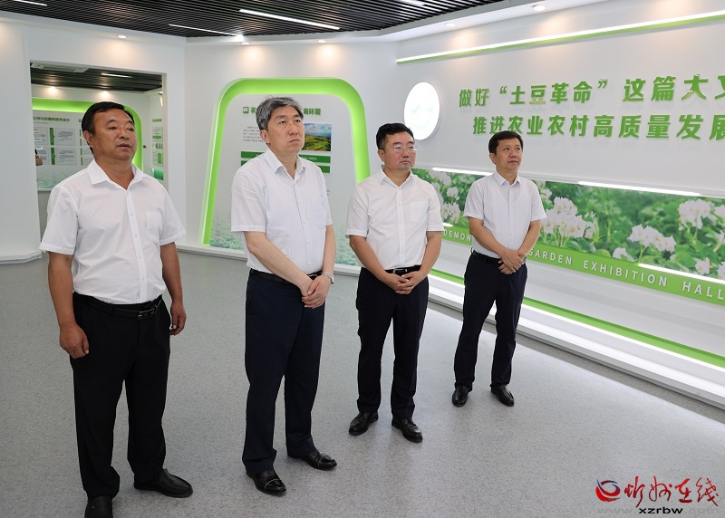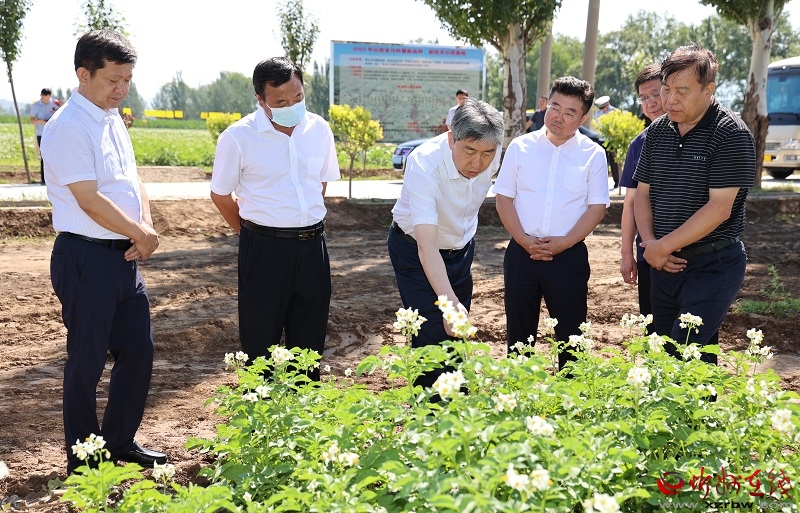 在安子村和張家坪村全面察看現代加工型馬鈴薯種植基地、萬畝谷子種植基地高標準農田建設,聽取“機田證”一體化實踐和新型合作模式探索情況后,朱曉東強調,農民是現代農業(yè)產業(yè)鏈的基礎環(huán)節(jié),大力發(fā)展特色產業(yè),是促進農民收入穩(wěn)定增長的關鍵,要完善利益聯結機制,吸引更多農戶投入現代農業(yè)發(fā)展,切實抓住“機、地、人”的主要矛盾,解決好現代農業(yè)“誰來種地、怎么種好地”的問題。要在農業(yè)高新技術產業(yè)化應用上做出示范,堅持向科技要效益,突出農機農藝結合,注重“糧頭食尾”“農頭工尾”銜接,在現代化設施農業(yè)發(fā)展上不斷取得新突破,真正實現疊加效應,實現農業(yè)生產效益倍增,全面推進鄉(xiāng)村振興。