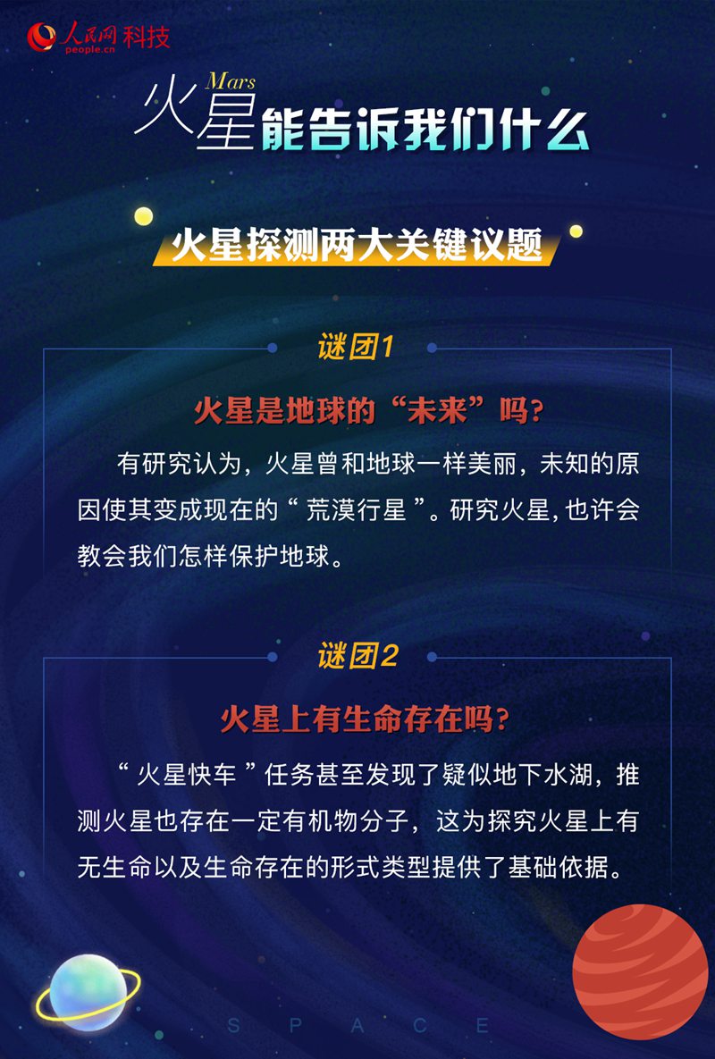 是什么原因?qū)е禄鹦鞘チ怂克鯓訌囊粋€藍色星球變成現(xiàn)在一片荒漠的紅色星球?其大氣、環(huán)境是如何演化的?火星的今天有沒有可能就是地球的明天?這些都是科學(xué)家們想要通過相關(guān)探測去解答的問題。
