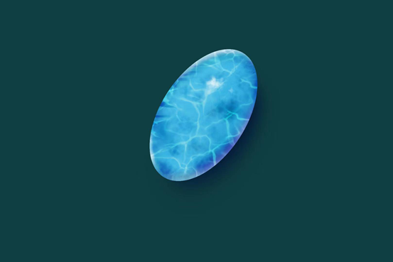 海紋石“石如其名”,有著和蔚藍(lán)大海一樣的顏色,其中藍(lán)綠色夾白色的形態(tài)就像海上的朵朵浪花。從礦物學(xué)的角度來說,它實(shí)際上是藍(lán)色針鈉鈣石的塊狀集合體。目前的研究認(rèn)為,海紋石的藍(lán)色部分和白色的紋路部分的礦物成分相同,均含有針鈉鈣石。其中藍(lán)色部分完全由針鈉鈣石組成,而白色部分由針鈉鈣石、方解石兩種礦物構(gòu)成,每種礦物顆粒均是微米級別。嚴(yán)格來說,海紋石屬于針鈉鈣石的含銅變種,它的藍(lán)色得益于銅、鉻、釩等過渡元素,其中銅為主要的致色元素。