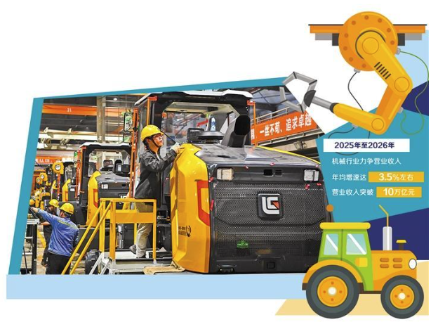 《方案》提出,2025年至2026年,機(jī)械行業(yè)運(yùn)行保持平穩(wěn)向好態(tài)勢,重點(diǎn)產(chǎn)業(yè)鏈供應(yīng)鏈韌性和安全水平持續(xù)提升,發(fā)展質(zhì)量效益邁上新臺(tái)階,力爭營業(yè)收入年均增速達(dá)到3.5%左右,營業(yè)收入突破10萬億元。中國機(jī)械工業(yè)聯(lián)合會(huì)相關(guān)負(fù)責(zé)人表示,《方案》的目標(biāo)設(shè)定,體現(xiàn)了規(guī)模與質(zhì)量并重的系統(tǒng)性思維,強(qiáng)調(diào)供給和需求兩側(cè)協(xié)同發(fā)力。