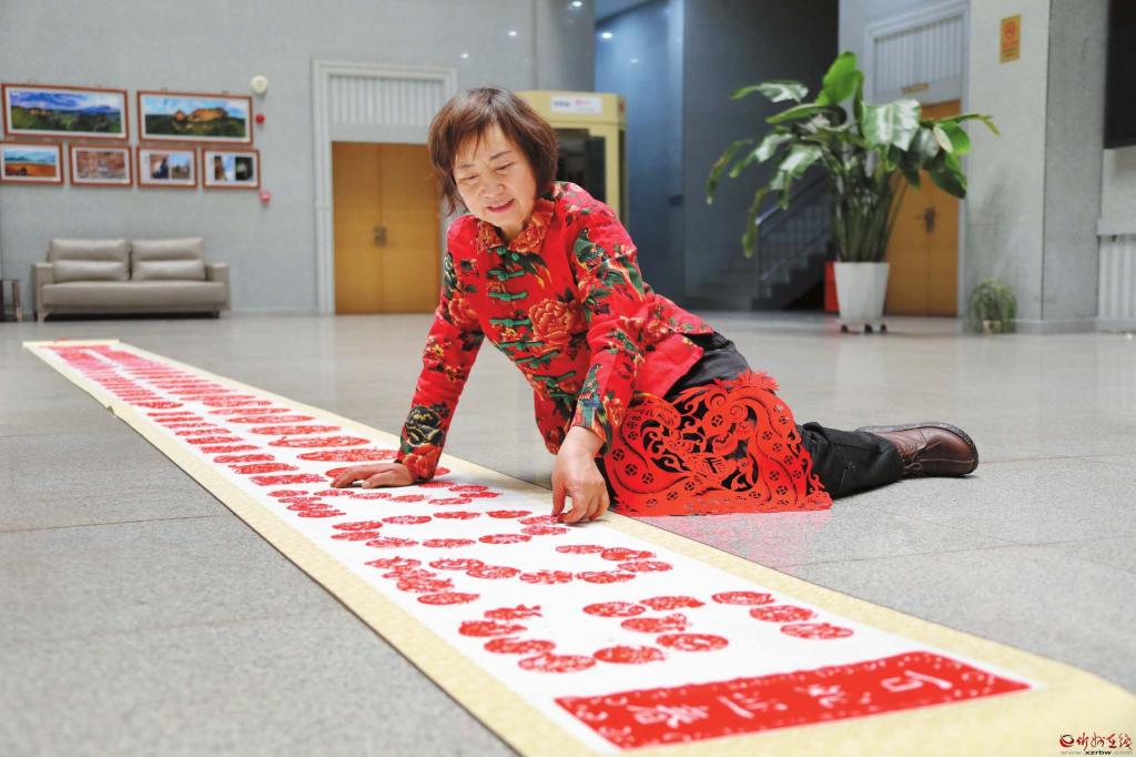 韋東梅說(shuō),春節(jié)前后,希望可以舉辦一次以《百蛇迎春》系列作品為主要內(nèi)容的剪紙作品展?!罢钩鲎约阂约巴降軅兊募艏堊髌?,讓回家過(guò)年的年輕人能夠感受到來(lái)自家鄉(xiāng)的一份年味兒。” (田沁梅)
