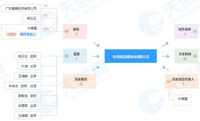 曾經(jīng)的“哎呀呀”已經(jīng)成了時代的眼淚,但在2013年,一個更強的名創(chuàng)優(yōu)品誕生了。天眼查顯示,名創(chuàng)優(yōu)品股份有限公司(簡稱“名創(chuàng)優(yōu)品”)的曾用名是哎呀呀飾品連鎖股份有限公司(簡稱“哎呀呀”),大股東、最終受益人是葉國富,其持股比例高達(dá)90%。