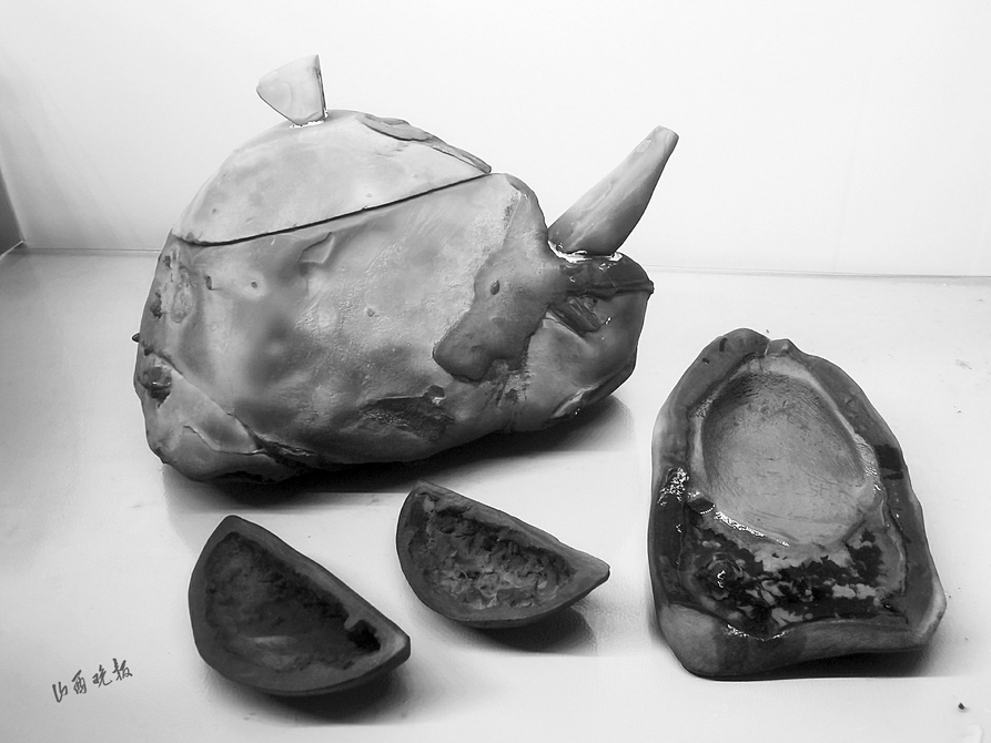 日前,在陽(yáng)泉市古生物化石保護(hù)協(xié)會(huì)的會(huì)員線下交流活動(dòng)中,71歲的奇石愛好者任富材將家中收藏的大量觀賞石標(biāo)本展示出來。他收藏陽(yáng)泉觀賞石及化石已有50余年,他的收藏包含各種地質(zhì)巖石標(biāo)本:靈璧石、木魚石、煤核石、木化石、海螺化石、方解石、瑪瑙石、鈣質(zhì)結(jié)核等,琳瑯滿目。在這些藏品中,一種褐鐵礦結(jié)核——木魚石,頗為引人注目,這些石頭被任富材制作成了硯臺(tái)、茶壺、石函、擺件等精美工藝品。任富材說,在《山西中藥典》一書中記載的禹余糧,其實(shí)就是木魚石,別名又叫“太一余糧”“石中黃子”,俗稱“還魂石”“鳳凰蛋”,有著吉祥如意的寓意,被民間爭(zhēng)搶收藏。眾多礦石愛好者對(duì)任富材的這些木魚石藏品產(chǎn)生了濃厚的興趣,也對(duì)陽(yáng)泉本地木魚石的儲(chǔ)量、特性、成分等打起了問號(hào)。