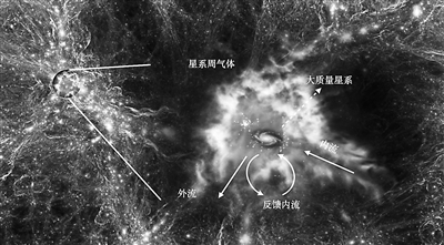 氣體的內(nèi)流與循環(huán)內(nèi)流和星系形成緊密相關(guān)。 清華大學(xué)天文系供圖