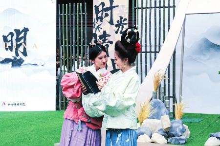近日,山西傳媒學(xué)院在太原市萬(wàn)柏林區(qū)萬(wàn)象城下沉廣場(chǎng)舉辦了“漢服印象”傳統(tǒng)服飾教學(xué)成果展演。活動(dòng)現(xiàn)場(chǎng),35名來(lái)自該校的大二學(xué)生,均身著漢、唐、宋、明等朝代的服飾,向現(xiàn)場(chǎng)的觀眾展示了60套獨(dú)具特色的原創(chuàng)設(shè)計(jì)作品,并進(jìn)行了沉浸式國(guó)風(fēng)走秀教學(xué)成果展演和氣氛熱烈的古詩(shī)詞問(wèn)答互動(dòng)節(jié)目。