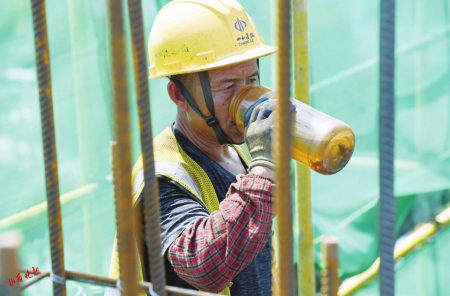 連日來,我省多地持續(xù)高溫??捎羞@樣一群人,他們不畏酷暑,默默堅(jiān)守在自己的崗位上。7月11日,山西晚報(bào)記者來到太原市杏花嶺區(qū)文化活動(dòng)中心項(xiàng)目施工現(xiàn)場(chǎng),將鏡頭對(duì)準(zhǔn)了高溫下的建設(shè)者。 當(dāng)日,是入伏第一天,意味著開始進(jìn)入一年中最熱的時(shí)候。在熱火朝天的施工現(xiàn)場(chǎng),工人師傅們埋頭苦干,他們雖然戴著自制遮陽帽、冰袖,身旁放著水壺,但一小會(huì)兒工夫就會(huì)汗流浹背?!斑@樣的杯子,我每天要喝好幾杯水。”天氣太熱,來自四川樂山的林英把杯子里的水一飲而盡。黝黑的皮膚、如雨的汗水、潮濕的后背……當(dāng)大多數(shù)人避暑納涼時(shí),不少勞動(dòng)者卻辛勤地?fù)]灑著汗水,堅(jiān)守在施工一線。在這個(gè)工地上,有很多和林英一樣的打工人,他們來自全國(guó)各地,用青春和汗水建設(shè)美麗山西。 為了預(yù)防工人師傅們中暑,太原市杏花嶺區(qū)文化活動(dòng)中心項(xiàng)目施工方準(zhǔn)備了清涼油、藿香正氣水、綠豆湯,還專門熬制了防暑中藥。 在兩個(gè)多小時(shí)的采訪中,山西晚報(bào)記者汗流浹背,戴著安全帽的頭發(fā)早已全部濕透,深深體會(huì)到了高溫下戶外勞動(dòng)者的辛苦,以及他們身上散發(fā)出來的勞動(dòng)之美。在此,感謝他們?yōu)槌鞘薪ㄔO(shè)的付出,向他們致以崇高的敬意。 山西晚報(bào)記者 武六紅攝影報(bào)道 1.手扶帽檐,仰看天空。 2.炎炎夏日,大量喝水補(bǔ)充體能。 3.安全帽+遮陽帽,干活、防曬兩不誤。 4.頭頂烈日,高空作業(yè)。 5.擦一把汗,工作繼續(xù)。 (責(zé)任編輯:梁艷) |