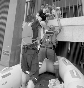 這是白龍華第一次參加洪澇災(zāi)害的救援,她被隊(duì)員們的勁頭感動(dòng)?!八虑闆r復(fù)雜,不可控的因素太多,各種雜物堆積,橡皮艇被淹沒在水中的彩鋼板劃破,但無論遇到什么情況,隊(duì)員們都沖鋒在前,安全轉(zhuǎn)移受困者?!卑埲A說。