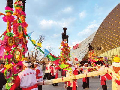 “中莊秧歌”等傳統(tǒng)非遺項(xiàng)目在陽城縣天官王府景區(qū)開演。