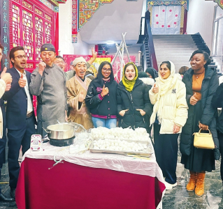 “我在山西過大年”,2月23日,正月十四,省對外友協(xié)組織30余名在晉留學(xué)生來到清徐,參加元宵節(jié)民俗體驗活動,看社火、賞非遺、滾元宵、了解老陳醋和葡萄酒文化,留學(xué)生們被中國元宵節(jié)的紅火熱鬧氣氛深深感染。來自巴基斯坦的留學(xué)生yahya告訴記者:“太有趣了,這是我第一次感受中國的元宵節(jié),和來自不同國家、文化背景的同學(xué)們一起慶祝,是我人生中美好的回憶。”為讓留學(xué)生沉浸式體驗中國年,省內(nèi)高校各顯神通,或贈送春節(jié)吉祥物、燈籠、年畫等;或組織“筆墨凝書香,春聯(lián)進萬家”手寫春聯(lián)活動;或開展“留學(xué)生中國家庭春節(jié)”體驗日,邀請留學(xué)生在中國教師家中吃團圓飯,學(xué)習(xí)剪窗花、做花燈、包餃子,感受中華傳統(tǒng)年文化和家文化魅力。山西醫(yī)科大學(xué)國際教育學(xué)院院長樊清華說:“在教授好專業(yè)知識的同時,我們要為留學(xué)生提供更多了解中國經(jīng)濟社會發(fā)展、中華歷史文化的平臺和機會,通過親身參與春節(jié)文化活動可以幫助他們感知山西、了解中國、讀懂中國?!?/p>