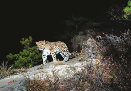 2023年10月,拍攝組分兩次前往和順—榆次太行山華北豹種群棲息地,在聞名的華北豹打卡地“榮耀石”等多個(gè)點(diǎn)位放置相機(jī)。榮耀石是在山脊上狹窄地方的一塊突兀的大巖石,視野很開闊,這些年一共有超過7只金錢豹曾經(jīng)到過這里,動(dòng)保志愿者以《獅子王》小獅子辛巴誕生之處——榮耀石,為這里命名。選好拍攝場(chǎng)景,用手動(dòng)模式確定好焦點(diǎn)、快門速度、光圈和ISO,固定好合適的閃光燈位置。攝影師肖詩白也用了他的獨(dú)門絕技:給相機(jī)和閃光燈都套上用于防水的水魚袋(菜市場(chǎng)用來裝甲魚的塑料袋),最后離開。半個(gè)月后,這些相機(jī)拍到了一些豹子的好照片。