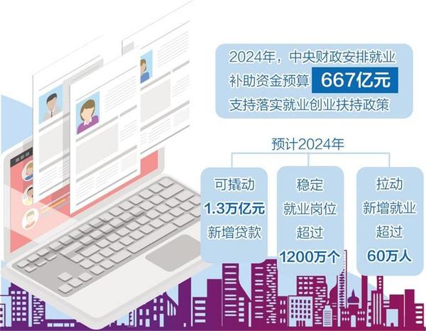 三是助力發(fā)揮創(chuàng)業(yè)帶動就業(yè)作用。對符合條件的重點群體和吸納其就業(yè)的小微企業(yè)申請的創(chuàng)業(yè)擔(dān)保貸款,財政部門給予貸款貼息。引導(dǎo)政府性融資擔(dān)保機(jī)構(gòu)加大對勞動密集型企業(yè)的傾斜?!拔覀冏隽艘粋€內(nèi)部測算,預(yù)計2024年可撬動1.3萬億元新增貸款,穩(wěn)定就業(yè)崗位超過1200萬個,拉動新增就業(yè)超過60萬人。”廖岷表示,將支持高校加強(qiáng)創(chuàng)新創(chuàng)業(yè)教育,提升大學(xué)生創(chuàng)新創(chuàng)業(yè)能力;對符合條件的高校畢業(yè)生、就業(yè)困難人員首次創(chuàng)辦小微企業(yè)或者從事個體經(jīng)營的給予創(chuàng)業(yè)補(bǔ)貼。