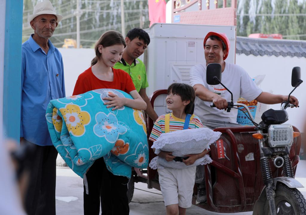 6月30日,烏什縣亞曼蘇柯爾克孜族鄉(xiāng)居民正搬進(jìn)新房。新華社發(fā)(楊碩 攝)
