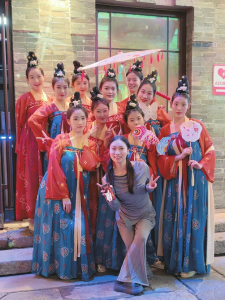 “忻青年”第一個視頻的標題是《跟著我們在古城街道上炫起來,民族的才是世界的》。最初的賬號只是推送藝術團在演出之余的短視頻,用于宣傳沉浸式演出《遇見秀容》。民間舞較大眾化,有熟悉的旋律,廣場舞動作簡單又生活化,容易普及。通過短視頻讓更多的人了解忻州古城,看見《遇見秀容》團隊演出之余的生活。