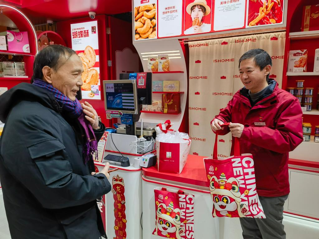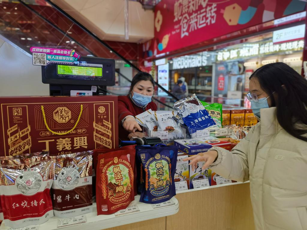 新華社上海1月20日電(記者陳愛平)走進(jìn)位于南京路步行街的第一食品商店,喜慶紅火的新春裝飾、琳瑯滿目的非遺美食、排隊(duì)精挑細(xì)選年貨的顧客、笑著稱重裝袋的售貨員……過年的幸福感在掀開擋風(fēng)門簾瞬間“拉滿”。 仔細(xì)逛,這家商店里云集許多非遺美食,老城隍廟五香豆、梨膏糖、功德林素食、楓涇丁蹄、老香齋一口香等等,人們甚至不必前往這些非遺項(xiàng)目的“誕生地”便能“吃遍上?!?。 家住上海市松江區(qū)的七旬市民劉鳳美,乘坐一個(gè)多小時(shí)的地鐵來到第一食品商店。她選購了包裝精美的五香豆、梨膏糖,又散稱了一些炒瓜子、松子、曲奇餅干。盡管當(dāng)下網(wǎng)購發(fā)達(dá),老字號(hào)分店遍地都是,劉阿姨仍然堅(jiān)持逢年過節(jié)來南京路購物的習(xí)慣。
