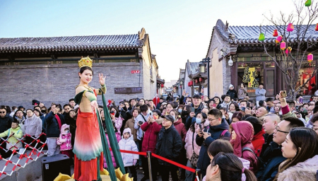 “實(shí)景演出、非遺表演、傳統(tǒng)民俗、特色美食、科技體驗(yàn),景區(qū)‘火力全開’,帶來的影響簡(jiǎn)直超乎我們想象?!鄙吣暌婚_張,晉中左權(quán)縣桐峪1941小鎮(zhèn)便迎來了新春“開門紅”,火爆程度讓該縣桐峪鎮(zhèn)桐灘村黨支部書記申亞俊感慨道:“人山人海,好多村民可能這輩子都沒想到,自己家鄉(xiāng)能吸引這么多人?!?/p>