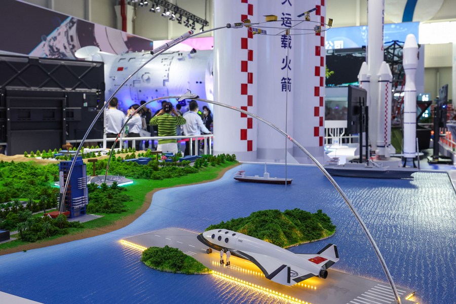 2022年11月11日,中國(guó)新一代運(yùn)載火箭模型及發(fā)動(dòng)機(jī)實(shí)物亮相中國(guó)航展。新華社記者 劉大偉 攝