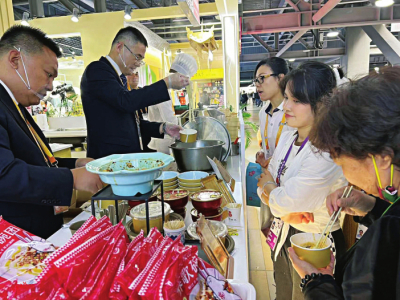 “此次參會,山西會務(wù)集團(tuán)特別準(zhǔn)備了近年推陳出新、改良工藝的美食新品,希望以美食為載體,以文化為橋梁,讓更多人了解山西、走進(jìn)山西、愛上山西、投資山西?!蓖醮喝A說,“從連續(xù)幾天觀眾的反饋來看,山西刀削面、莜面栲栳栳最受大家歡迎,每天都有人排長隊品嘗,可以說供不應(yīng)求。此外,酥脆香甜的原平鍋盔、用石子炒制的石頭餅、精心烘焙的黃花餅、經(jīng)典小吃柳林碗托等都是觀眾愛吃的‘爆款’,再配合精彩的面食表演,來往客商連連點贊,直呼好吃好看?!?/p>