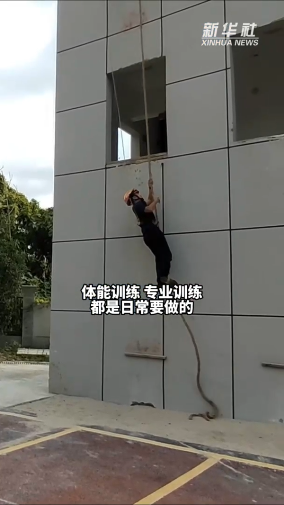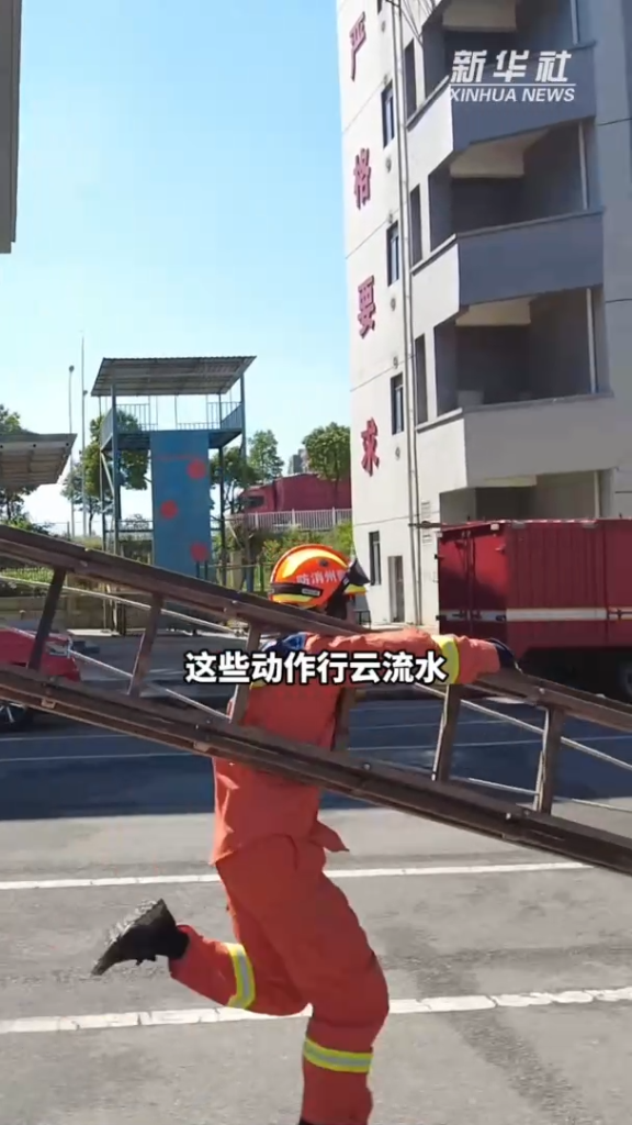 整理內務、體能訓練、專業(yè)訓練都是日常要做的,穿著40多斤重的裝備,身手十分的嫻熟。拋擲水帶、連接分水器、架設消防梯、水槍連接水帶這些動作行云流水,絲毫不拖沓。