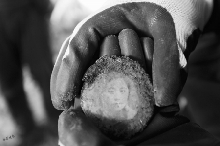 事情發(fā)生在4月10日,縱覽新聞記者李見第一時(shí)間趕到現(xiàn)場,對烈士尋親進(jìn)行了報(bào)道。挖掘現(xiàn)場,烈士保持著雙手交叉放在胸前的姿勢,雙手緊握著一枚小圓鏡,鏡子中間夾著一張端莊秀麗的女子黑白照片。雖然鏡子周邊沾滿了泥土,雖然被烈士緊握82年,但照片中的女子一塵不染、清晰可見。