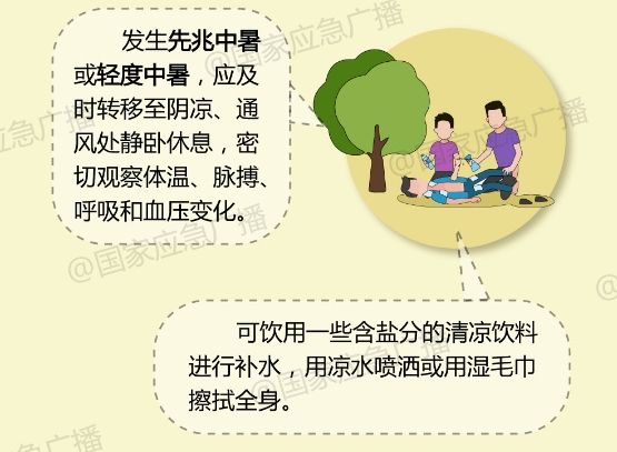 應(yīng)盡量避免待在高溫、高濕及不通風(fēng)的環(huán)境里,出行避開高溫時(shí)段,做好防曬防暑。