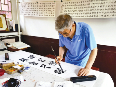 5月16日,“山西姥爺”王朝珠,以筆墨為禮,祝賀“山河+”客戶端全新啟程。山西晚報·山河+記者 王晉磊攝