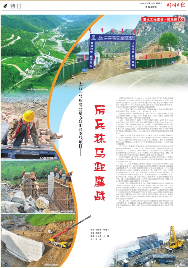 搶抓建設(shè)黃金期,刷新項目進度條。近日,在太行一號旅游公路五臺山段支線項目建設(shè)現(xiàn)場,工人們正有條不紊地加緊施工,挖機、裝載機、運輸車來回穿梭,建設(shè)工地呈現(xiàn)出一片熱火朝天的繁忙景象。
