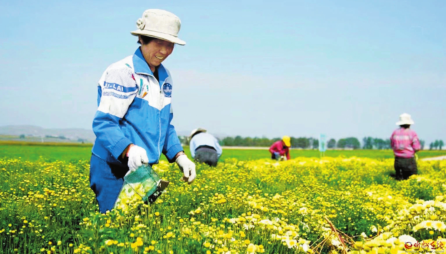 金秋的五寨,千畝菊花種植基地里盛開的藥菊吐露芬芳,微風中帶著淡淡清香。
