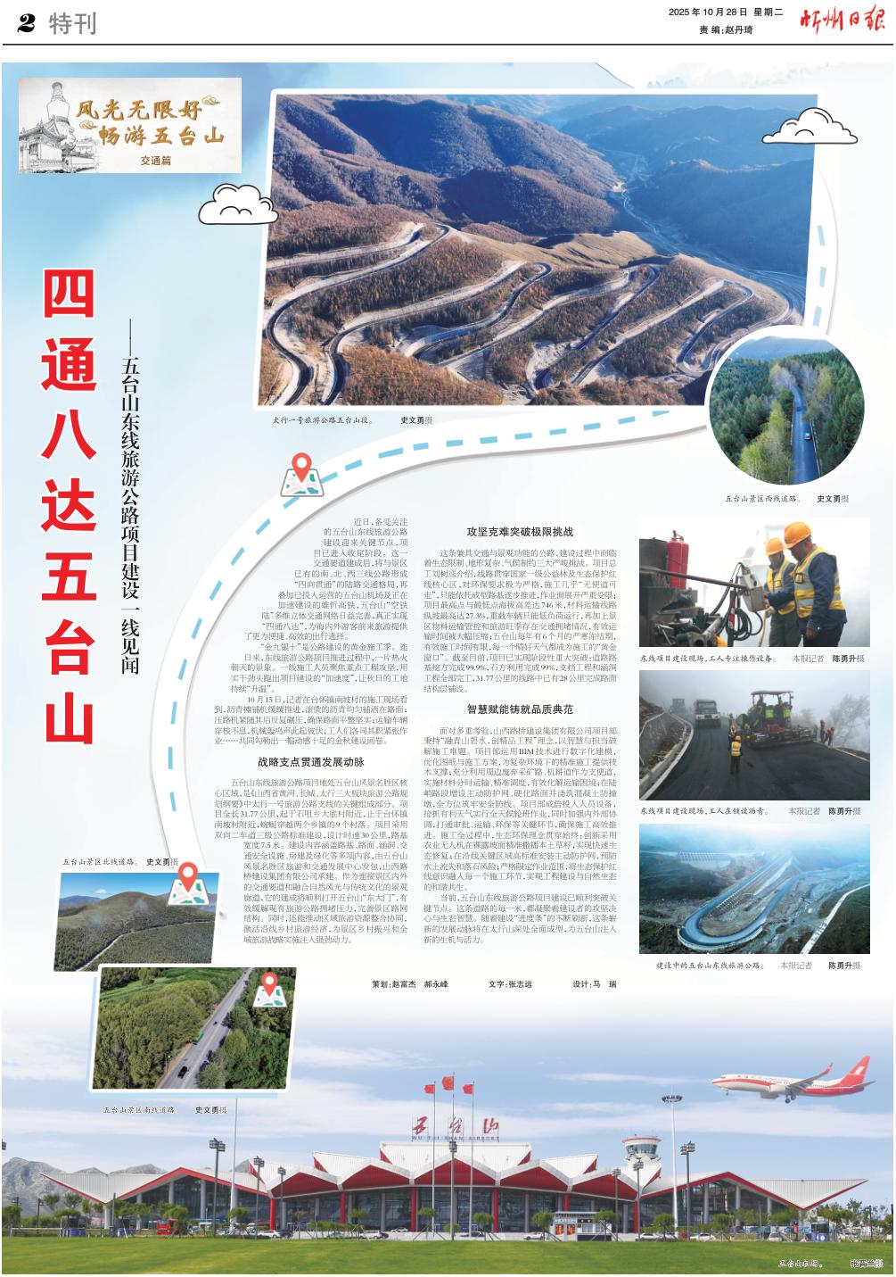 近日,備受關(guān)注的五臺(tái)山東線旅游公路建設(shè)迎來(lái)關(guān)鍵節(jié)點(diǎn),項(xiàng)目已進(jìn)入收尾階段。這一交通要道建成后,將與景區(qū)已有的南、北、西三線公路形成“四向貫通”的陸路交通格局,再疊加已投入運(yùn)營(yíng)的五臺(tái)山機(jī)場(chǎng)及正在加速建設(shè)的雄忻高鐵,五臺(tái)山“空鐵陸”多維立體交通網(wǎng)絡(luò)日益完善,真正實(shí)現(xiàn)“四通八達(dá)”,為海內(nèi)外游客前來(lái)旅游提供了更為便捷、高效的出行選擇。