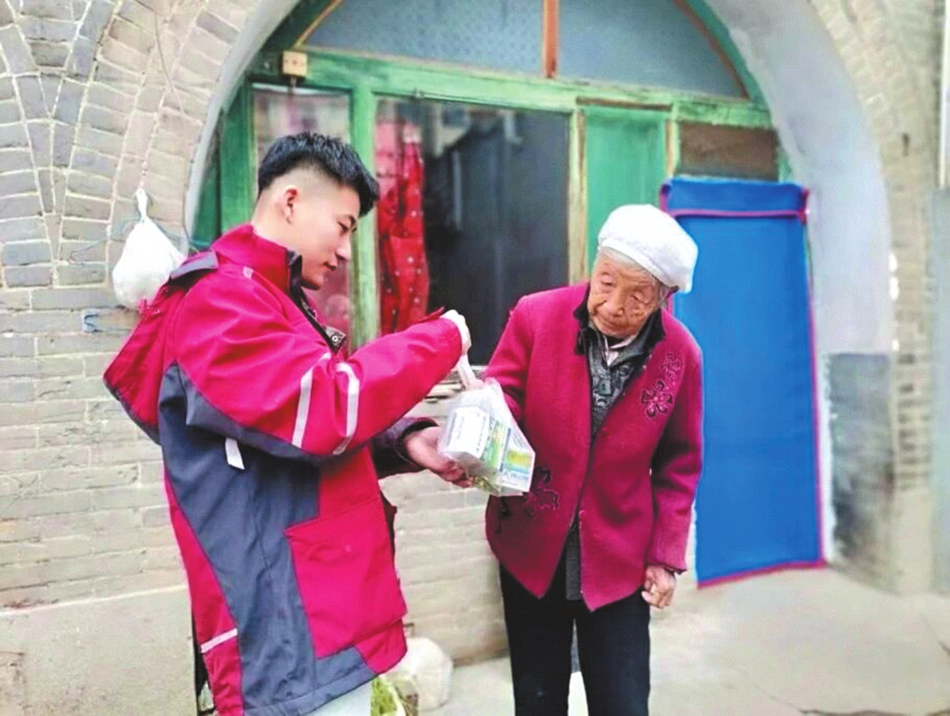 快遞員幫助年邁居民代買(mǎi)藥品