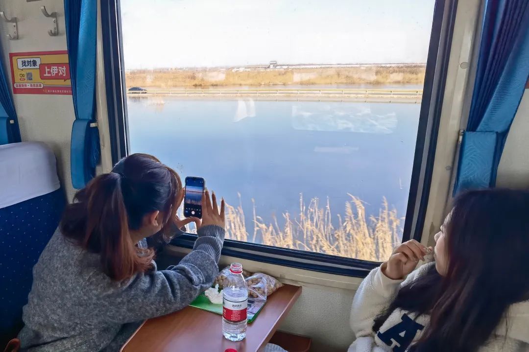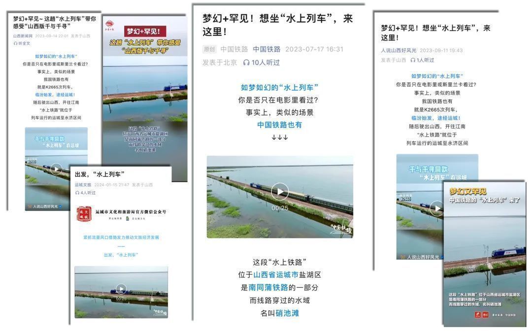 列車駛出運(yùn)城站,工作人員開始為旅客熱心介紹打卡拍照的最佳地點和周邊的名勝古跡,并且精心準(zhǔn)備了小道具,方便大家打卡拍照。