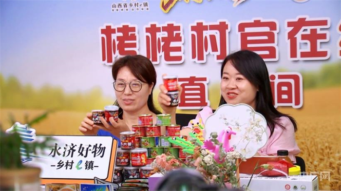 永濟(jì)市栲栳鎮(zhèn)鄉(xiāng)村e鎮(zhèn)里,主播正在銷售當(dāng)?shù)剞r(nóng)特產(chǎn)品(央廣網(wǎng)發(fā) 永濟(jì)市融媒體中心供圖)
