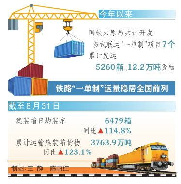 在持續(xù)拓展集裝箱運輸品類的同時,國鐵太原局還積極優(yōu)化實施多式聯運“一單制”運輸模式。今年以來,先后聯合17家企業(yè)開發(fā)了生鐵、鉻鐵、化肥、焦炭等鐵水聯運全程物流產品,實現山西至全國各主要港口航線“一單到底”。今年以來,國鐵太原局共計開發(fā)多式聯運“一單制”項目7個,累計發(fā)運5260箱、12.2萬噸貨物,鐵路“一單制”運量穩(wěn)居全國前列。