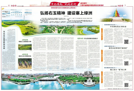見6—7版 本報訊(記者任永亮)“我們腳下的這片土地,就是右玉縣種下的第一片樹林?!?0月15日,站在右玉縣南山森林公園豐碑雕塑前,順著83歲退休老干部王德功手指的方向,映入記者眼簾的是數(shù)十萬畝的松柏林,松濤陣陣,滿目蒼翠,草木特有的清新氣息撲面而來。當(dāng)初這個黃沙遍地的“不毛之地”,靠著代代接力,書寫著綠色奇跡。 新中國成立70多年來,在黨中央和省委的領(lǐng)導(dǎo)下,右玉縣歷屆縣委、縣政府一張藍(lán)圖繪到底,一任接著一任干,團(tuán)結(jié)帶領(lǐng)全縣人民,鍥而不舍地植樹造林,堅持不懈地防風(fēng)固沙、改善生態(tài)。全縣林木綠化率從不足0.3%上升到57%,創(chuàng)造了舉世矚目的生態(tài)奇跡,鑄就了寶貴的“右玉精神”。 綠水青山就是金山銀山。近年來,右玉縣著力推動山水林田湖草沙一體化保護(hù)和系統(tǒng)治理,加快生態(tài)文明建設(shè)和產(chǎn)業(yè)綠色轉(zhuǎn)型發(fā)展步伐。大力推進(jìn)以沙棘為主、其他鮮干果為輔的特色經(jīng)濟(jì)林建設(shè),全縣沙棘林總面積達(dá)到28萬畝,年采摘沙棘果8000多噸,發(fā)展沙棘加工、銷售企業(yè)12家,產(chǎn)值達(dá)3億元以上。全力打造10億元生態(tài)羊、5億元沙棘、5億元糧油蔬果、1億元小香蔥、1億元邊雞5條產(chǎn)業(yè)鏈,全縣羊飼養(yǎng)量年均達(dá)到90萬只,特色雜糧種植保持在40多萬畝,20多家農(nóng)業(yè)產(chǎn)業(yè)化龍頭企業(yè)研發(fā)藥食同源康養(yǎng)產(chǎn)品5大系列160多種,生態(tài)的“含綠量”正源源不斷轉(zhuǎn)化為發(fā)展的“含金量”。 右玉縣一手抓生態(tài)文明建設(shè),一手抓全面綠色轉(zhuǎn)型。大力推進(jìn)“風(fēng)光火儲”一體化發(fā)展,風(fēng)光新能源發(fā)電裝機(jī)總?cè)萘窟_(dá)到209萬千瓦。聚焦“雙碳”目標(biāo),與上海環(huán)境能源交易所、北京綠色交易所合作建立綠色低碳發(fā)展實踐基地,積極參與全國碳市場首日交易,著力打造全省綠色低碳發(fā)展先行區(qū)。成為全國生態(tài)文明建設(shè)的典范,走出了一條生態(tài)美、產(chǎn)業(yè)興、百姓富的綠色發(fā)展之路。今年上半年地區(qū)生產(chǎn)總值完成44.09億元,同比增長4%,全市排名第二。2025年,全縣實施500萬元以上項目161個,總投資218.03億元。 作為右玉精神的發(fā)祥地,朔州市大力學(xué)習(xí)弘揚(yáng)右玉精神,始終牢牢把握綠色發(fā)展的正確方向,始終把保護(hù)生態(tài)環(huán)境作為高質(zhì)量發(fā)展的根本立足點,持續(xù)推動生態(tài)立市戰(zhàn)略實施,探索資源型地區(qū)生態(tài)文明建設(shè)的新路子。朔州市生態(tài)環(huán)境局統(tǒng)計數(shù)據(jù)顯示,2025年1月—8月,朔州市環(huán)境空氣質(zhì)量綜合指數(shù)為3.28,與去年同比下降17.0%,全省排名第二;優(yōu)良天數(shù)213天,同比增加20天。劣V類水體、黑臭水體全面剿除,國考斷面全部為優(yōu)良水質(zhì),實現(xiàn)了“一江清流向京冀”。礦區(qū)土地復(fù)墾率、植被覆蓋率分別達(dá)到60%和90%以上。市、縣建成區(qū)全部實現(xiàn)清潔取暖,農(nóng)村清潔取暖覆蓋率達(dá)到100%。 朔州市持續(xù)引深“右玉精神在朔州”主題實踐活動,著力構(gòu)建多元支撐的現(xiàn)代化產(chǎn)業(yè)體系,推動綠色發(fā)展、高質(zhì)量發(fā)展。立足優(yōu)質(zhì)奶源、優(yōu)質(zhì)肉羊、優(yōu)質(zhì)牧草、優(yōu)質(zhì)玉米、優(yōu)質(zhì)雜糧、優(yōu)質(zhì)蔬果六大基地建設(shè),拓展百億元乳業(yè)、百億元肉業(yè)、50億元糧油、50億元蔬果四條全產(chǎn)業(yè)鏈。推進(jìn)總投資971億元的102個制造業(yè)項目,推動今年內(nèi)建成投產(chǎn)36個。以低碳硅芯產(chǎn)業(yè)園建設(shè)為依托,著力打造千億級硅芯產(chǎn)業(yè)集群。全鏈條陶瓷企業(yè)發(fā)展到108家,形成了年產(chǎn)日用瓷38.5億件、建筑瓷7200萬平方米的生產(chǎn)能力。 (責(zé)任編輯:梁艷) |
